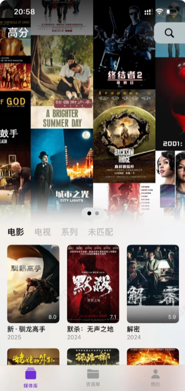 -全能媒体管理,整合本地、NAS及云端视频资源,自动抓取影片详情、海报与分类信息。