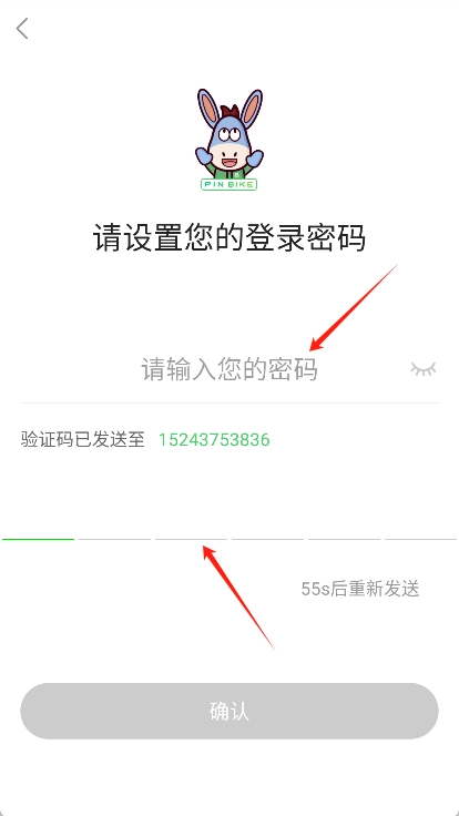 输入手机号码获取验证码,并设置密码完成注册。