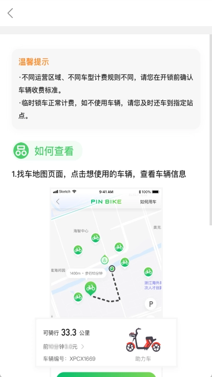 最后在骑行结束后在服务区内还车即可。